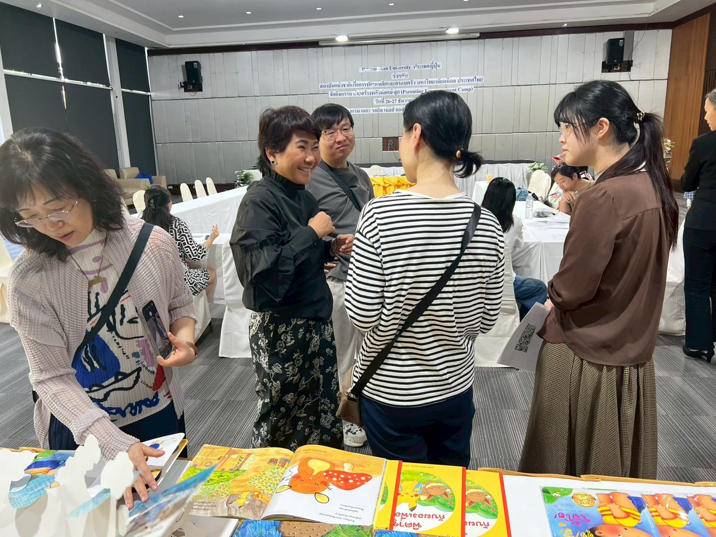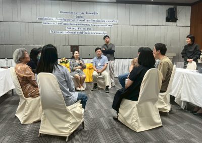 The second day focused on shared learning experiences between parents and children through picture book reading activities using culturally and developmentally appropriate materials, led by Associate Professor Dr. Wimontip Musikapan. This was followed by small-group sessions on the theme “Child Development and Family Systems,” providing opportunities for parents to exchange experiences and engage in close, meaningful discussions. The program concluded with interviews and surveys with both mothers and fathers to evaluate overall outcomes and the effectiveness of the camp activities.