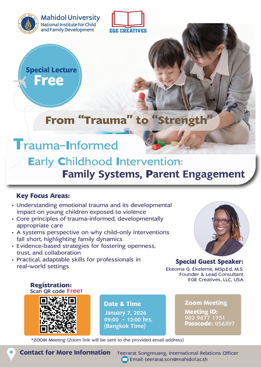 Join us for a special online lecture exploring how trauma-informed approaches can strengthen families and promote resilience in young children exposed to adversity and violence.