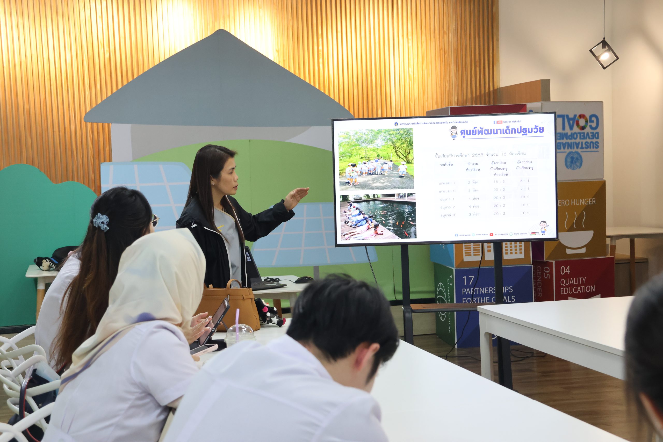 ในช่วงเช้า คณะแพทย์ประจำบ้านได้เข้าเยี่ยมชมและศึกษาการดำเนินงาน ณ ศูนย์พัฒนาเด็กปฐมวัย โดยมีทีมบุคลากรจากศูนย์พัฒนาเด็กปฐมวัยให้การต้อนรับและบรรยายสรุปเกี่ยวกับกระบวนการส่งเสริมพัฒนาการเด็กในบริบทจริง เพื่อให้แพทย์ได้เห็นภาพการปฏิบัติงานที่เป็นเลิศ (Best Practice) ในการดูแลเด็กเล็กอย่างเป็นรูปธรรม