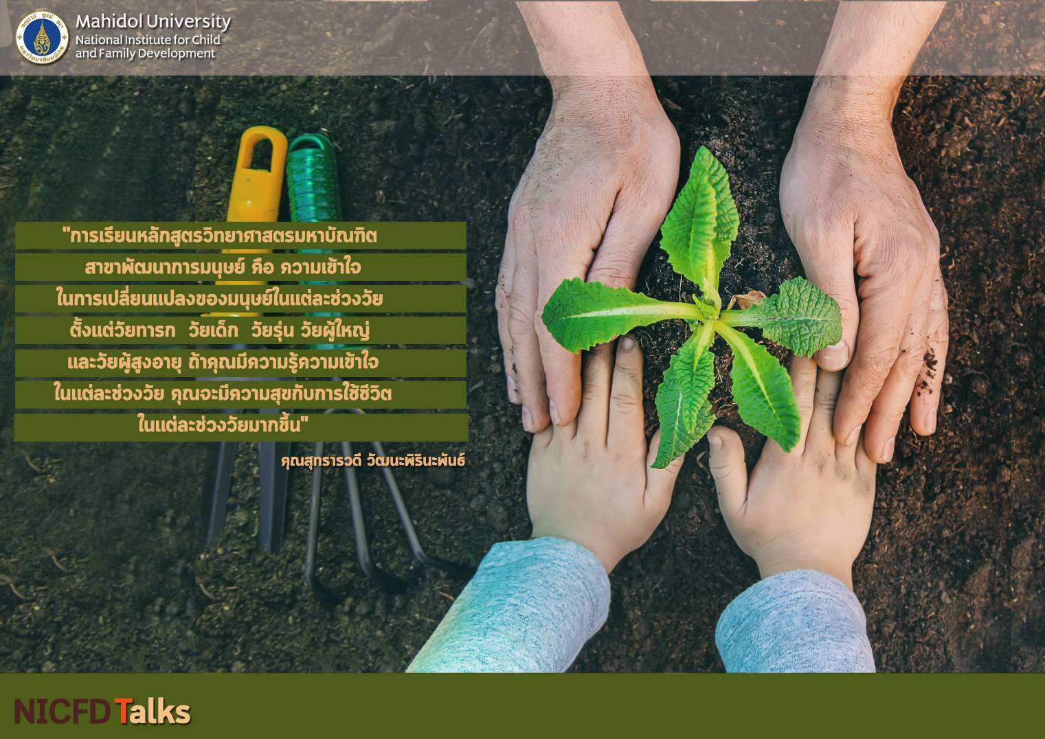 ทำไมคุณดีถึงเลือกเรียนปริญญาโท หลักสูตรวิทยาศาสตรมหาบัณฑิต สาขาวิชาพัฒนาการมนุษย์ ที่ สถาบันแห่งชาติเพื่อการพัฒนาเด็กและครอบครัว มหาวิทยาลัยมหิดล