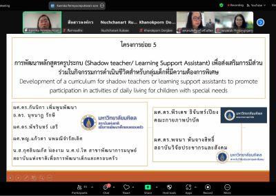 วันที่ 19 พฤษภาคม 2568 สถาบันแห่งชาติเพื่อการพัฒนาเด็กและครอบครัว มหาวิทยาลัยมหิดล จัดแถลงข่าวผลลัพธ์โครงการวิจัย“การพัฒนาหลักสูตรครูประกบ (Shadow teacher/ Learning Support Assistant) เพื่อส่งเสริมการมีส่วนร่วมในกิจกรรม การดำเนินชีวิต สำหรับกลุ่มเด็กที่มีความต้องการพิเศษ” โดยมีคณะวิจัย นำโดย ผศ.ดร.ก.บ.กันนิกา เพิ่มพูนพัฒนา , ผศ.ดร.ก.บ. พีรเดช ธิจันทร์เปียง , ผศ.ดร.พจนา หันจางสิทธิ์ , ดร. นุชนาฏ รักษี , ผศ. พญ. แก้วตา นพมณีจำรัสเลิศ และ ผศ.ดร. พัชรินทร์ เสรี โดยมี ดร.นุชนาฎ รักษี รองผู้อำนวยการฝ่ายวิจัย สถาบันแห่งชาติเพื่อการพัฒนาเด็กและครอบครัว เป็นประธานในการแถลงข่าวครั้งนี้ โดยงานวิจัยครั้งนี้มีวัตถุประสงค์เพื่อ พัฒนาและตรวจสอบแบบประเมินการมีส่วนร่วมในกิจกรรม (Activity Participation Assessment: APA) ของเด็กไทย อายุ 6-12 ปี ฉบับผู้ปกครองและเด็ก สำรวจระดับการมีส่วนร่วมในกิจกรรมของเด็กที่มีความพิเศษกลุ่มต่าง ๆและคุณภาพชีวิตของเด็ก พัฒนาหลักสูตรครูประกบ (Shadow teacher) เพื่อส่งเสริมการมีส่วนร่วมในกิจกรรมการดำเนินชีวิตสำหรับกลุ่มเด็กที่มีความต้องการพิเศษ