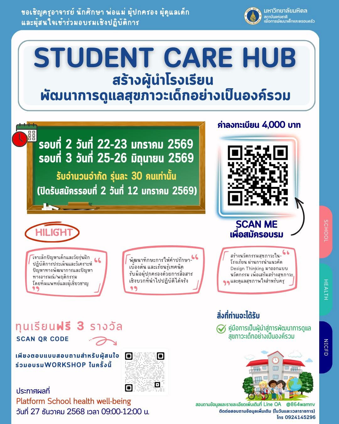 #StudentCareHub #āļŠāļļāļ‚āļ āļēāļžāđ€āļ”āđ‡āļ #āļžāļąāļ’āļ™āļēāļāļēāļĢāđ€āļ”āđ‡āļ #āļ­āļšāļĢāļĄāļ„āļĢāļđ #āđ‚āļĢāļ‡āđ€āļĢāļĩāļĒāļ™ #āļœāļđāđ‰āļ›āļāļ„āļĢāļ­āļ‡ #āļĄāļŦāļīāļ”āļĨ #MahidolUniversity #āļāļēāļĢāļ”āļđāđāļĨāļŠāļļāļ‚āļ āļēāļžāđāļšāļšāļ­āļ‡āļ„āđŒāļĢāļ§āļĄ #DesignThinking